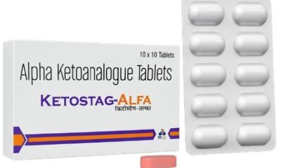 COMPOSITION : Each film coated tablet contains : Calclum-3-methyl-2-0xo-valerate 67 mg (a-Ketoanalogue to isoleucine, Calcium salt) Calcium-4-methyl-2-0xo-valerate 101 mg (a-ketoanalogue to leucine, Calcium salt) Calcium-2-0x0-3-phenylpropionate 68 mg (a-ketoanalogue to phenylalanine, Calcium salt) Calcium-3-methy1-2-0xo-butyrale 86 mg (a-ketoanalogue to valine, Calclum salt) Calciúm-DL-2-hydroxy-4(methylthio) butyrate 59 mg (a-bydroxyanalogue to methlonine, Calcium salt) L-Lysine Acetate U.S.P 105 mg (Eg to L-Lysine 75 mg) LThreonine 53 mg L Tryptophan I.P. 23 mg Histidjne Hydrochloride Monohydrate B.P. Eq, to Histidine 36 mg LTyrosino U.S.P. 30 mg Total nitrogen content per tablet 36 mg Calcium content per tablet 1.25 mmol=0.05 g Excipients q.s